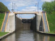 - Once secured to the wall, the lock master closes the door behind you and begins to adjust the water level in the lock. 20 out of our 22 locks we were going up, only the last 2 were we going down.