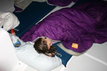 seriousness, the sleeping out at anchor is GREAT. There are no bright lights or the hum of civilization to grate on your ears, but rather the quiet lap of the waves on the hull, the clanking of the anchor chain, and the whoosh of the wind. These may sound like constant and disturbing noises, but in truth they act like a lullaby, drifting you into sleep at night. At anchor, you can also sleep outside. It is an absolutely amazing sensation, to rock on the hammock under the stars, no worries or concerns or crazy parties in the slip across from yours. Also, even in a calm anchorage, there is always motion. It seems like you might get sea sick, but in fact its the opposite. At night in bed, you get rocked to sleep by the gentle waves.